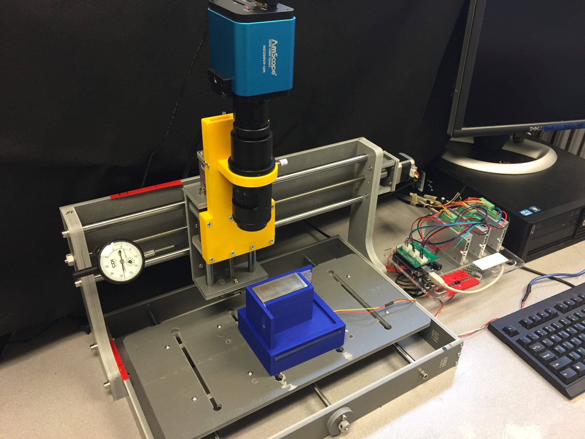 With an incredibly small system and complex manufacturing process, it is paramount that the surface of the array block be fully understood during each phase. Physical traits such as a channel’s absolute location, size, shape, blockage, and alignment with other channels must be understood. The system must be reliable and repeatable to allow for a channel by channel comparison of the thruster surface at different stages in the manufacturing process. COCO scans the array taking picture at one millimeter steps. These images are stitched to create a single panoramic image. Afterwhich, a neural network trained to detect channels, records data on the channel's location, brightness and shape.