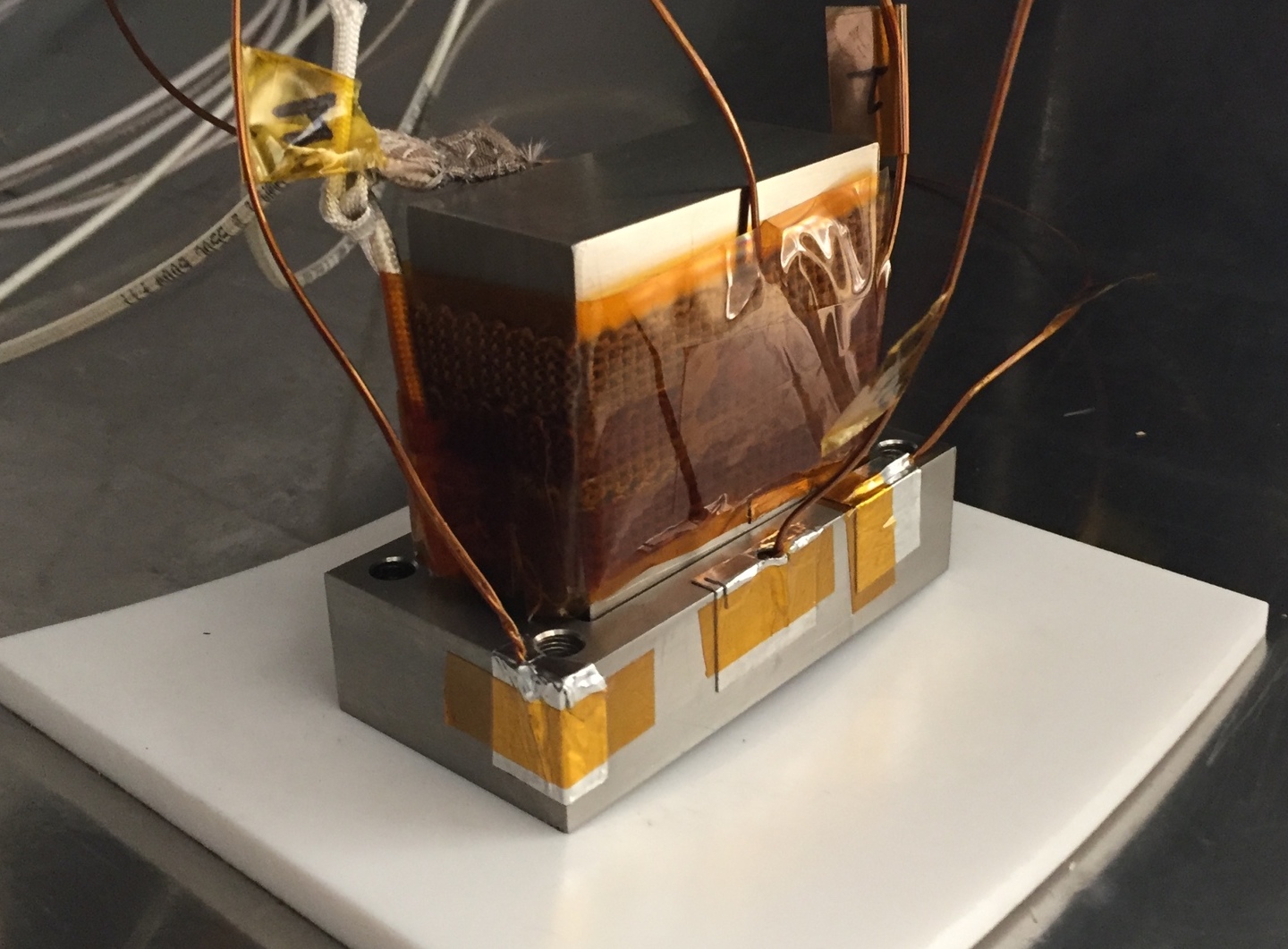 During this time, experimental test were conducted. Test were performed in the belljar vacuum facility. Temperature readings were collected using thermocouples attached to key points on the assembly. This data was collected over a span of 8 hours, or until steady state. The assembly was tested at varying array temperatures and compared with simulation data to determine the thermal contact resistivity. To collect data, LabVIEW was integrated with the oscilloscope to collect data twice every minute.
