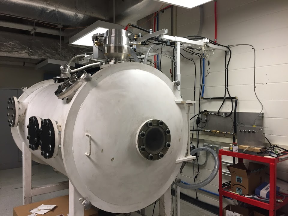 In the summer of 2018, I managed the construction of a new vacuum chamber facility to be used for Hall thruster experiments. This facility is 1.2-m-diameter and 2.1-m-long evacuated to a base pressure of 10-6 Torr. I organized, purchased, and managed the instruments and components necessary for the vacuum to operate. Equipped with 12 different ports, I focused on understanding what components were needed for each port and their specific need to the future research to be conducted.